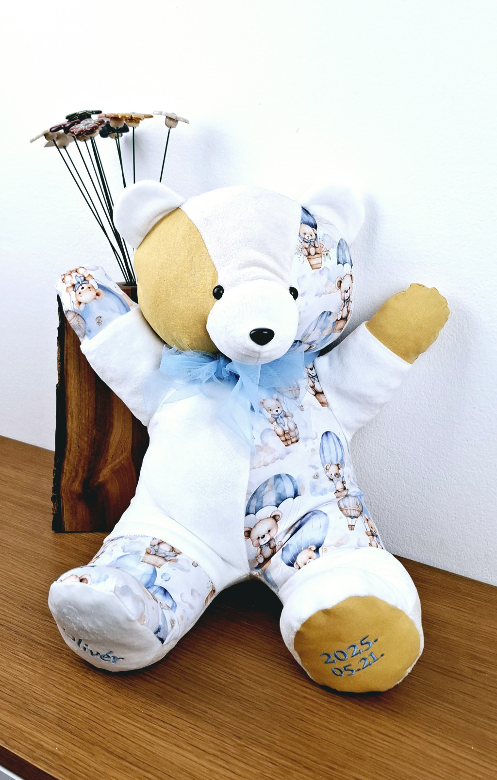 Még egyedibbé tehető, ha a maci egy részére – például a sáljára vagy egy kis alkatrészére – emlék-anyagot használunk. Lehet ez az első tipegőből egy darabka, egy régi takaró sarka, vagy egy olyan anyag, ami a családnak fontos emléket őriz. Így minden ölelésben ott rejtőzik egy történet, egy érzés, egy felejthetetlen pillanat.