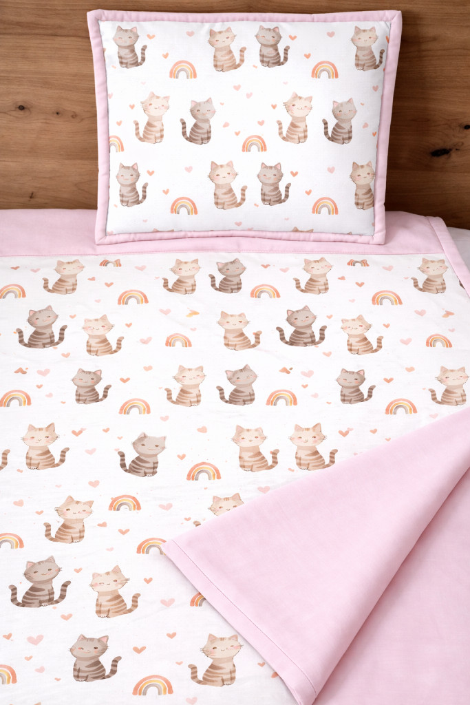 ÚJ Cicák rózsaszín-Pamutvászon takaró párna szett