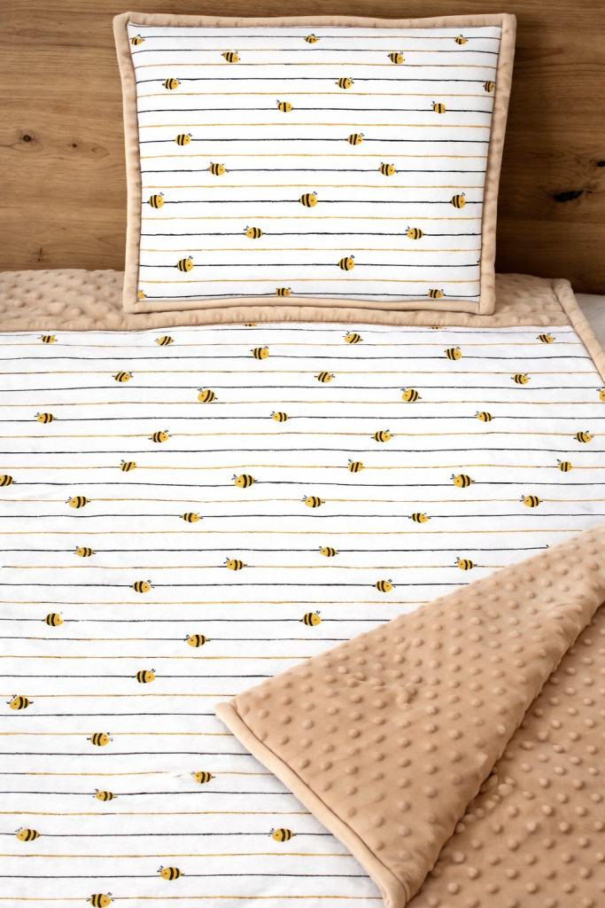 A takaró és a párna 150 g vatelinnel, egyben összevarrva készülnek, így stabil, tartós és praktikus megoldást nyújtanak.