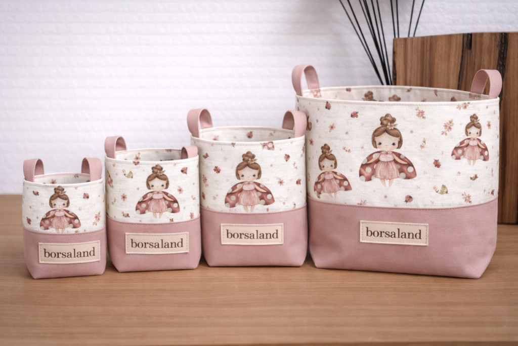 A tároló minőségi pamut anyagból, kézzel készül, megerősített kialakítással, hogy akkor is stabil maradjon, amikor tele van pakolva. A rajta megjelenő minták egyedi textiltervezői munkák, amelyek végigvonulnak a Borsaland termékein, így könnyen összehangolhatók más darabokkal is.