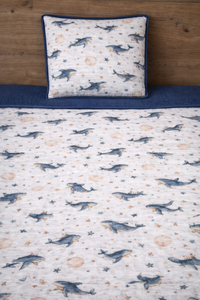 Kétoldalas kialakításának köszönhetően egyik oldalán egyedi, mesés Borsi minták kelnek életre, a másik oldalon pedig finom, letisztult egyszínű muszlin simul a bőrhöz.