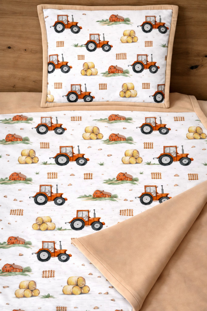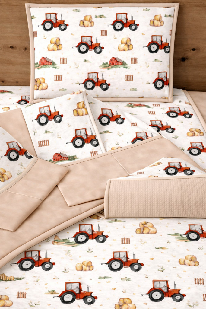 ÚJ Minőségi pamutvászon ovis kezdő szett – 6 részes-Piros traktor mogyoró