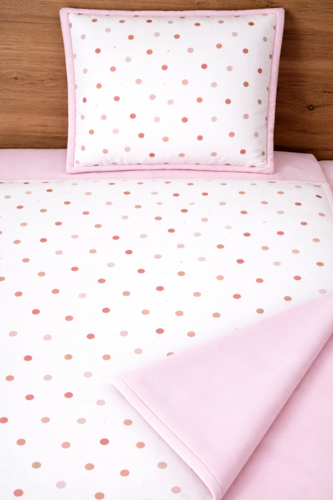 A másik oldal egyszínű pamutvászon, amely szépen kiegészíti a mintás oldalt, és harmonikus, letisztult megjelenést ad a szettnek.