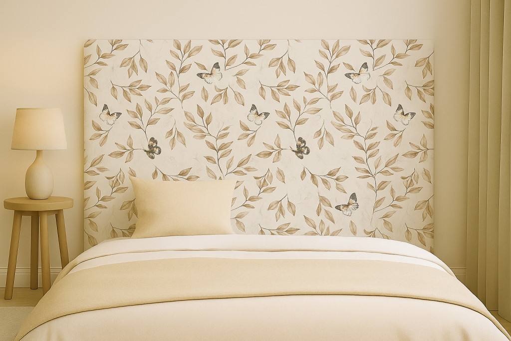 Natur Pihenő – a nyugalom textiljei-Felnőtt falvédők-Levéldíszes pillangós, elegáns, bézs–barna.