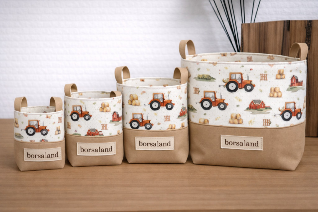 A tároló minőségi pamut anyagból, kézzel készül, megerősített kialakítással, hogy akkor is stabil maradjon, amikor tele van pakolva. A rajta megjelenő minták egyedi textiltervezői munkák, amelyek végigvonulnak a Borsaland termékein, így könnyen összehangolhatók más darabokkal is.