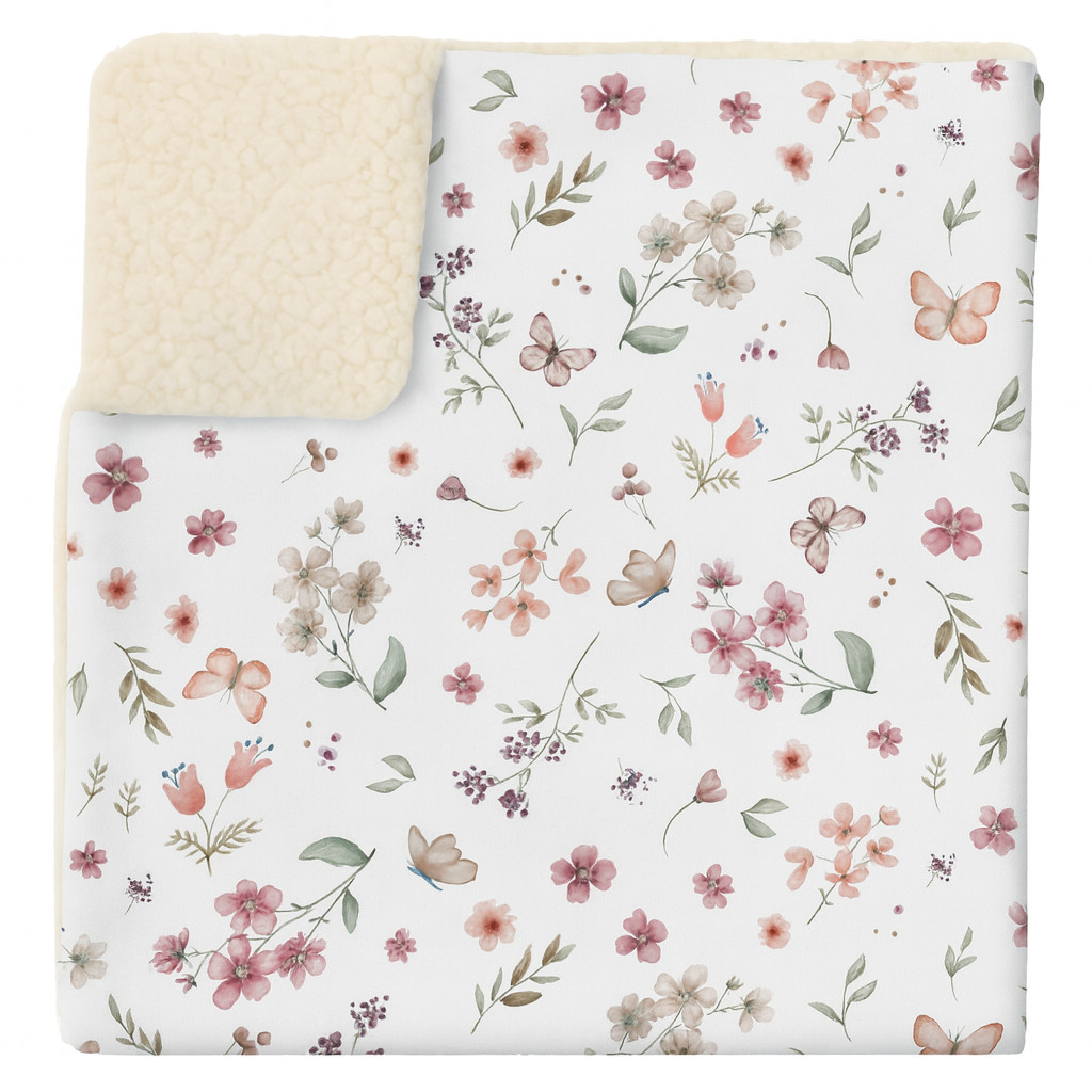 A sherpa oldala finoman körülöleli a kicsit, míg a pamutvászon oldal egyedi, szeretettel tervezett mintáival mesét varázsol a pihenés pillanataiba.