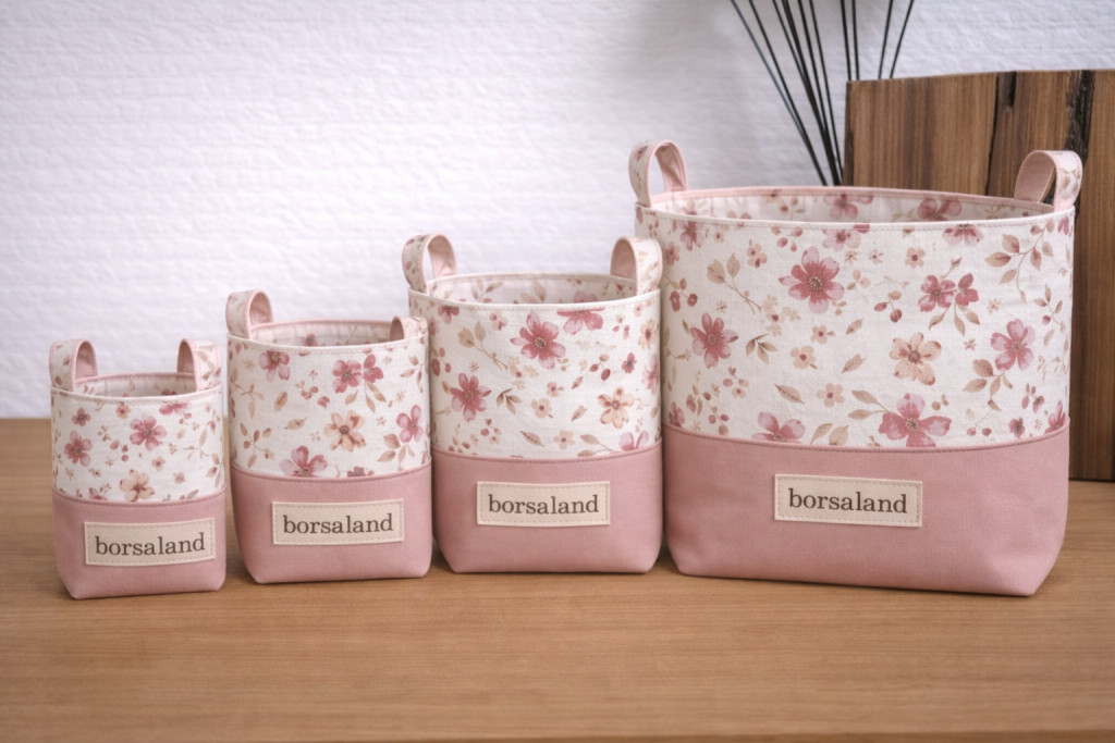A tároló minőségi pamut anyagból, kézzel készül, megerősített kialakítással, hogy akkor is stabil maradjon, amikor tele van pakolva. A rajta megjelenő minták egyedi textiltervezői munkák, amelyek végigvonulnak a Borsaland termékein, így könnyen összehangolhatók más darabokkal is.