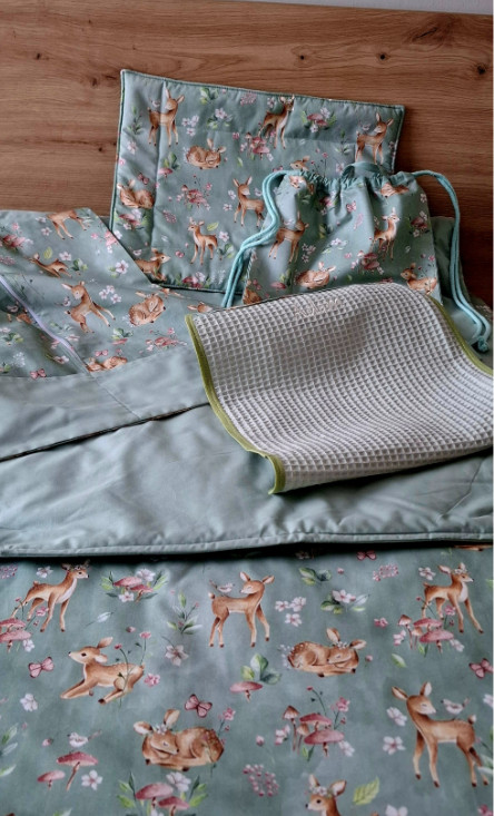 ÚJ Minőségi pamutvászon ovis kezdő szett – 6 részes-őzike zsálya